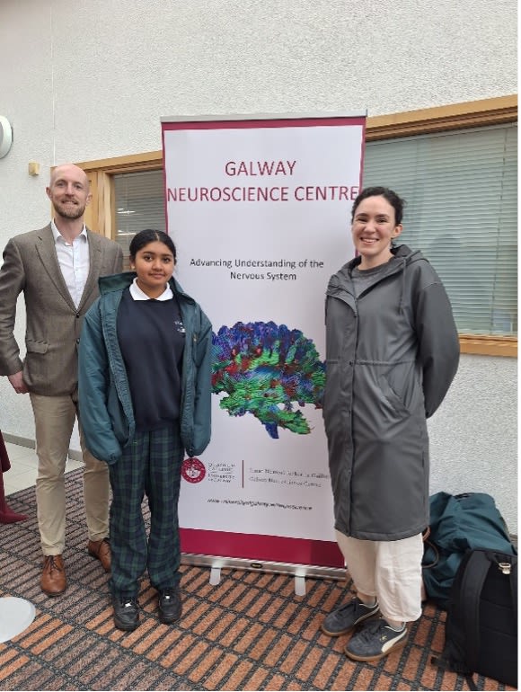 Pictured left to right Dr Declan McKernan (GNC Deputy Director), Rayhana Soe Paing (Third place from Salerno Secondary School, Galway) and Emily Ryan (Teacher, Salerno Secondary School, Galway).