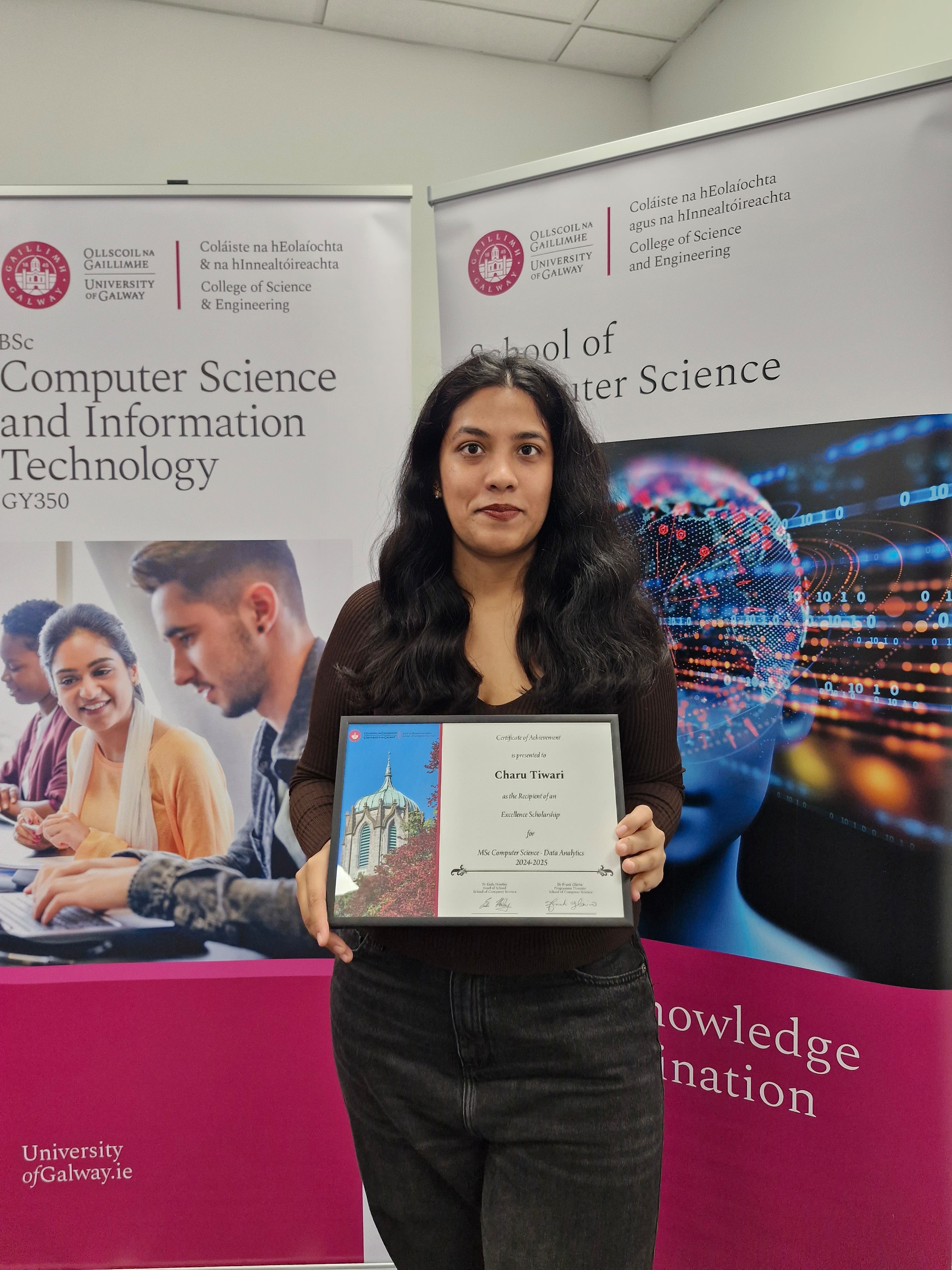 Excellence scholarship award from School of Computer Science. Photo credit: Charu